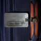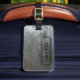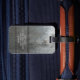 Den manliga bagagemärkren i ett silver bedrövade metallmönster. Personifiera med din egna namn och adress.