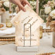 En lysande himmelskt formspråk med ömtåliga halvmånar och spridda stjärnbilder mot en varm pergamentbakgrund. En raffinerad guldbård inramar kompositionen, medan elegant typsnittsstilografi skapar en graciös fokuspunkt värdig en sådan meningsfull milstolpe. De mjuka elfenbens- och champagnetonerna ger hela verket en tidlös, strålande glans. Perfekt för en quinceañera-firande som känns romantisk, förfinad och berörd av stjärnljus.