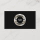 Mall med monogram visitkort med en initialer emblem i coola i monogram i ett metalliskt silver-utseende som väntar på att du ska anpassa högerna för online nu tillsammans med svart färg som gör att den dyker upp. Lägg till din kontakt- och affärsinformation på den vänstra sidan och gör ditt bästa första intryck.