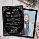 Han ÄR Mannen Myten LEGENDEN! Hans liv har varit ett fantastiskt äventyr och det är dags att fira hans arv och honom. Denna strukturerade svarta pappers 60-års inbjudan med vita typer och vita rullade hörn och med hedersgästens foto på baksidan är perfekt för att inbjuda vänner och familj att delta i firandet av denna otroliga milstolpe födelsedag! För att se dina personliga inbjudningar klickar du på " Anpassa denna mall "och skriver in din information och laddar upp ett favoritfoto. Det är superenkelt!