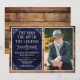 Han ÄR Mannen Myten LEGENDEN! Hans liv har varit ett fantastiskt äventyr och det är dags att fira hans arv och honom. Denna naturliga bakgrund av ljust brun trä och texturerat marinblått papper med vit text och vita, svepande hörn är perfekt för att inbjuda vänner och familj att delta i firandet av denna fantastiska milstolpe på 85-årsdagen! För att se dina personliga inbjudningar, klicka på " Anpassa denna mall" och skriv in din information och ladda upp ett favoritfoto. Det är superenkelt!