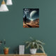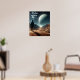 Mannen som står i öknen tittar vid fullt måne poster
