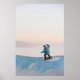 Människan i blå skateboarding på vägg på stranden poster