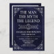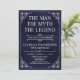 Han är mannen, myten! Hans liv har varit en fantastisk och det är dags att fira hans arv och hans arv. Den här texturerade marinblå pappra med vit typ och vit rullad hörninbjudan till 75:e födelsedag med hedersgästen på baksidan är perfekt för att bjuda in vänner och familj att gå med dig att hedra och fira denna otroliga milstolpe-födelsedag! Om du vill visa dina unika inbjudningar klickar du på "Anpassa den här mallen" och skriver in informationen och överför ett favoritfoto. Det är lätt toppen!