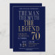 Hans liv har varit ett underbart äventyr! Den här fantastiska festinbjudan från marinen Blue manar 70 på födelsedagen som säger "The Man The Myth The Legend" i ett klassiskt typsnitt i silver och guld skulle vara perfekt för att be folk gå med dig när du firar mannen på ditt livs 70-årsdag. Denna inbjudan är trendig, snyggt, modern och contemporary. Om du vill visa dina unika inbjudningar väljer du "Anpassa den här mallen" och skriver in informationen. Det är lätt toppen!