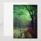 Kort med John Atkinson Grimshaws målning En månbelyst kväll (1880). En kuslig måne fyller den viktorianska Englands natthimmel medan en kvinna står på en gata kantad av träd. Framför henne ligger en upplyst byggnad. En fin present för fans av romantiken och det viktorianska England.