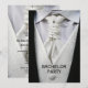 Personliga specialdesignade sängledning-inbjudningar för män. Framsidan av detta kort har en närbild av en mans kostym. En svart kavaj, en detaljerad vit väst, en vacker rufflad slips som hålls på plats med en silverfärg pin och en vit skjorta. Baksidan av detta coola sängledningskort har samma design som har förstorats, med tillräckligt med utrymme för att du ska kunna anpassa med dina evenemangsuppgifter. All text på dessa stilrena och unika manliga sängledningsinbjudningar är helt anpassningsbara för att möta dina krav. Om du behöver hjälp med att anpassa din produkt, vänligen kontakta mig via min butik och jag kommer att vara mycket glad att hjälpa dig. Bläddra bland andra gåvor från Zazzle.