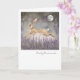 Detta charmiga tomma gratulationskort har en fantasifull illustration av en fläckig hare som hoppar graciöst över ett månbelyst landskap. Lila fält sträcker sig under en stjärnklar himmel och frammanar en lugn och magisk atmosfär. Konsten är delikat och folkligt inspirerad och fångar en känsla av rörelse och elegant elegans.