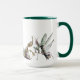 Vattenfärgad porträtt av vissa färgstarka mantis på en mugg.