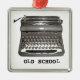 Fotografera av den manuella skrivmaskinen med ord "old school" som skrivs ut i klassikerskrivmaskinsstilsort.