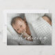 Manus som presenterar bebisfoto tack kort