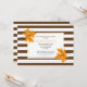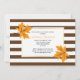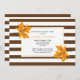 Orange maple löv och brunt, vitt strimlat mönster bröllop inbjudningskort för möhippan. En contemporary faller bröllop inbjudan som har orange som maple löv med bruna vener, ett vitt ram med guld kontur med texten och en strimlad mönster gräns.