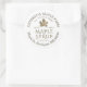 Lägg till namn, adress, sirap och lönnsirap i ditt företag klass. Elegant vit etikett med guld och ett sockerrör med guld löv.