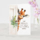 En glad akvarellgiraff tittar fram bakom en dörr prydd med delikat grönska och ger ett varsamt och omtänksamt intryck. Detta kort är perfekt för att skicka välgångsönskningar till någon som behöver lite uppmuntran. Oavsett om det är till en vän, familjemedlem eller kollega, så ger den lättsamma designen och budskapet en känsla av tröst och värme. Det är ett genomtänkt sätt att låta någon veta att du tänker på dem medan de vilar och återhämtar sig, och förmedlar både uppmuntran och tillgivenhet i en enda söt gest.