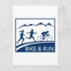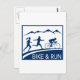 illustration av en silhuett av maratonets springer och cyklist tävling med berg och ord cykel och springa i stil