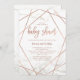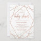De här contemporary babyduschinbjudningarna har en vit marmorbakgrund och ro guld geometriska linjer för ett edgy, modernt utseende.