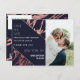 Modern, elegant och chic faux tryckt ro guld och marmor mönster på diagonalt justerat vykort för Spara till bröllop. Denna klassiska och sofistikerade utformning är perfekt för det trendig och det snyggt som gifter sig. Anpassa med ditt eget meddelande på framsidan och en anpassad inledande monogram på baksidan. All fotoutskriftsdesign.