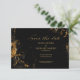 En bakgrund i abstrakten som påminner om marmor i skuggor från kol-grått till svart vind med glittrande guld är bakgrunden för elegant-manustext och moderna designlayouter i biet i detta vackra bröllop-svit. På det här datumkortet finns det ovan angivna plus en valfri text för flytande skript och en mall som du kan använda för att lägga till relevant information om bröllop fram och tillbaka. Sök i ID644 om du vill se alla koordinerande biet i den här uppsättningen.