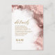 En bakgrund i abstrakten som påminner om marmor i skuggor av mjuk rosa genom taupe och som är vekad med glittrande ro guld är bakgrunden till elegantens manustext och moderna designlayouter i biet i denna vackra bröllop svit. Kortet för uppgifter om bröllop som visas här innehåller ovanstående text samt den valfria texten till skript med "uppgifter" och en mall som används för att lägga till all relevant bröllop-information för dina gäster, t.ex. researrangemang och händelsematerial kartor. Sök i ID644 om du vill se alla koordinerande biet i den här uppsättningen.