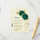 romantisk emerald grönt blommor och guld löv mot elegantens botaniska minneskort för marmor. Uppgifterna om glitter simuleras