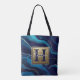 Blåagat i marble Guld Namn och Monogram Tote Bag
