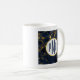Kaffe mugg med snyggt- och elegant bakgrund av marmor av marmor från marmor i marmor till marmor från marmor till marmor från marmor till marmor från marmor till marmor från flottan. Överst är en cirkel med faux guld foil gräns med personligens monogram inuti.