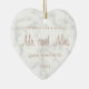 Gifte du dig i år? Lägg till ett minne i träd med denna moderna och elegant viktiga keramiska prydnad med ord, "Vår första jul som Mr och Mrs." i ett faux ro guld-skript över en grått och vit marmorbakgrund. Använda den mall som du vill lägga till namn och bröllop-året. Detta prydnadsföremål ger också en underbar gåva till ett nygift par inför deras första jul.