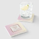 Den här moderna stenen underlägg en anpassningsbar i ro guld i en marmor ram på en giftig rosa-vanilla ombre-bakgrund.