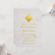 Ovanför texten finns det ett monogram inuti en faux-guld-folie. Monogrammet bildas av initialer 2 skrivet i ett elegant kalligrafiskt skript (standardskripten är D och W). Bakgrunden (och baksidan) är vit marmor. All text är gyllene. Namn och den sista frasen "Middag och dans att följa", skriven i ett elegant kalligrafiskt skript.