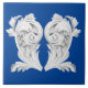 Marble Tendrils on a Blue Ceramic Tile Kakelplatta