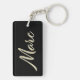 Ein sehr schöner edler personalisierter Schlüsselanhänger im whitegold Lettering Look auf schwarz für Marc.