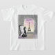 Svartvit felik katt som ut kontrollerar det Eiffel torn i Paris.