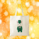 Tycker du om söt tote bags? Den här väskan har en vit kanin som spelar klarinett medan den bär en grönt- och guld-marschbanduniform.