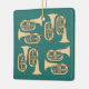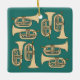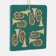 Tan marching baritone horns in a cross-shatch mönster mot en grönt bakgrund är en unik musikinstrumentdesign för lågbrasmusiker, musiklärare och studenter i marschband.