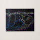 Fotografiet ändras till en abstrakt av en kurvkontur för en unik medlem av ett marschband för hondjur i profilen, med hennes hatt i ena handen och ett klarinett i den andra.