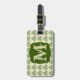Den här bagagetaggen har ditt monogram i ljusa guld och ditt efternamn i vitt skrivet över monogrammet. Monogrammet och grönten placeras på en banderoll som är infogad i motsvarande guld. Bakgrunden är en mönster av gröntens schackbräck som marscherar i rader över yta. Baksidan av märkrn matchar solid grönt, med din anpassade text i ljusa guld. Visa din irländska sida!