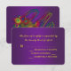 Mardi Gras Bröllop OSA Cards. | Vi skapade en lavish golden Mardi Gras-mask som dekorerats med fredsfjädrar i flera färgader och pärlor på en fantastisk djup lila bakgrund, och texten finns i ett vackert, berömvärt gyllene färg. Det finns en samordning av Mardi Gras bröllopsinbjudningar, tilläggskort och andra bröllop- och evenemangsprodukter.