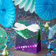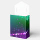 Ljus lila och grön bakgrund med glänsande konfetti. Festival Mardi Gras.