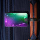 Ljusstark bakgrund för lila och grönt med blank konetti. Festival Mardi Gras.