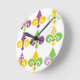 Den här väggklockan har en Mardi Gras-design av loppur de lis som är inklädd över designen med olika utformning i dem.