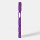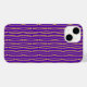 Den här telefonväskan har en geometrisk Mardi Gras-design av en typ av platta ovaler som upprepas över designen i guld och grönt på en fält av lila.