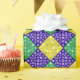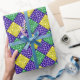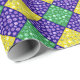 Roligt Mardi Gras diamant mönster i skuggor av lila, grönt och gyllene gult med polka dots som liknar faux (tryckta) gnistor.