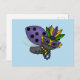 Cute ladybug med lila vingar redo för Mardi Gras med en färgstark mask och pärlor.