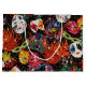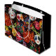 Stor glansig presentväska med en bild på framsidan och baksidan av färgstarka Mardi Gras-masker med skarpa fjädrar och glitter på svart. Se hela samlingen Mardi Gras Gift Bag i SPECIELLA TUUCHES | Avsnittet Party favors.