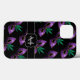 Anpassa faux glatt, mobilt tillbehör med ditt första och namn. Festiva och vackra masker i Passion Lila med Gult Golden Embellement och Emerald Grönt fjädrar mönster på svart. Vi använda Foto av sparkles glitter!