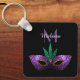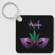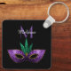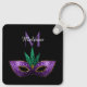Mardi Gras Mask Lila Grönt Sparkles Monogram Nyckelring