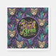 A Colorful Mardi Gras Paper Party Napkin Designed With Gold Masks And Colorful Feathers