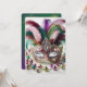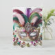 En livfull maskeradmask är prydd med färgglada fjädrar och invecklad juveler, som utstrålar en atmosfär av festlighet och elegans.
