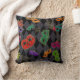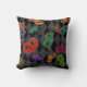 Mardi Gras dekorativ kudde har ljusmasker i grönt, rosa, röd lila, turkos och orange mot bakgrund av svart och grått harlequin diamant mönster. Designad av världsberömd konstnär ©Tim Coffey.