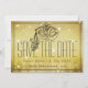 Inbjudan era Mardi Gras party gäster i stil med det här eleganten. Den här designmallen har en bakgrund med faux guld och harlequin med text som lyder "Spara datum" med datum, stad och läge för att du ska kunna anpassa dig. På baksidan av vykortet finns ett område där du kan anpassa mer information om party. Designad av världsberömd konstnär ©Tim Coffey.